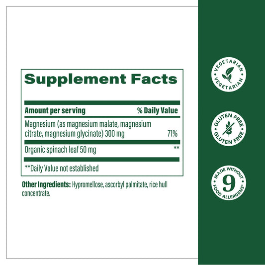 Magnesium 300 Mg - Glycinate, Citrate, Malate - Heart, Nerve Health - 30 Servings