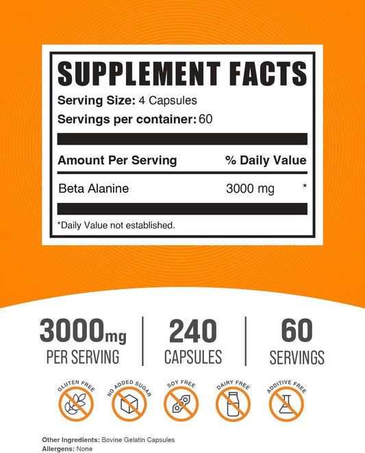 .Com Beta Alanine Capsules - Beta Alanine Supplement, Beta Alanine Pills, Beta Alanine 3000Mg - Gluten Free, 4 Capsules per Serving, 240 Capsules (Pack of 1)